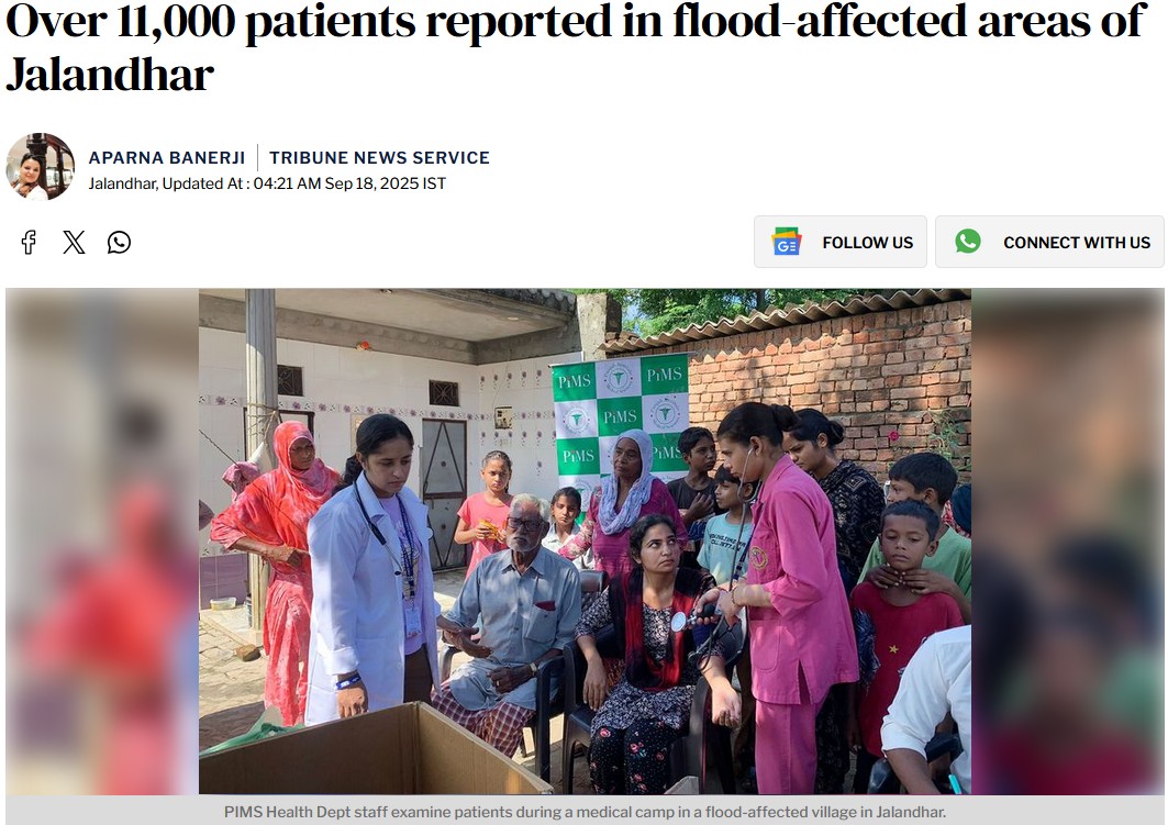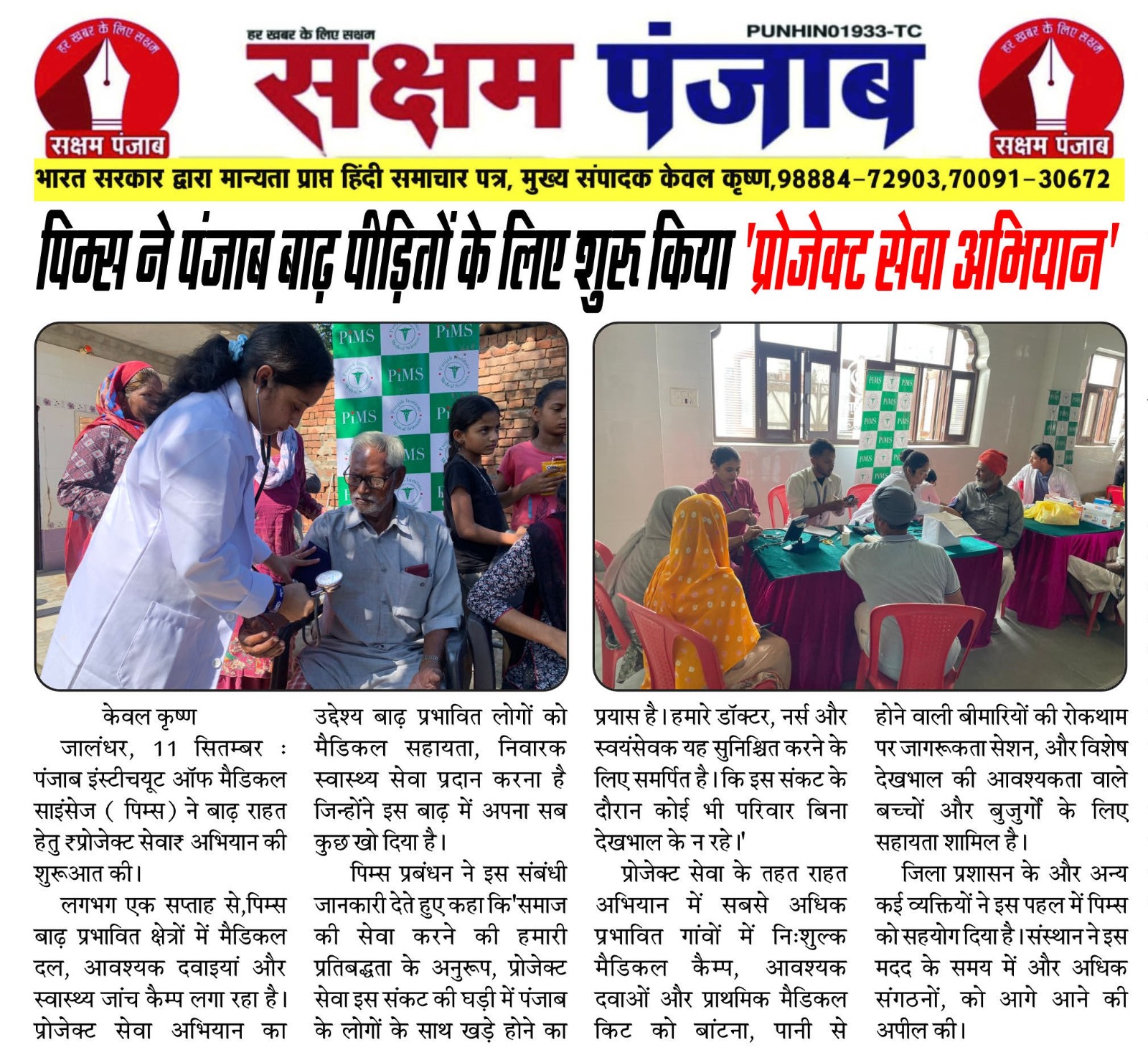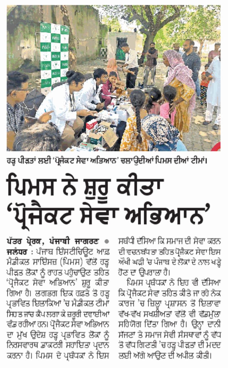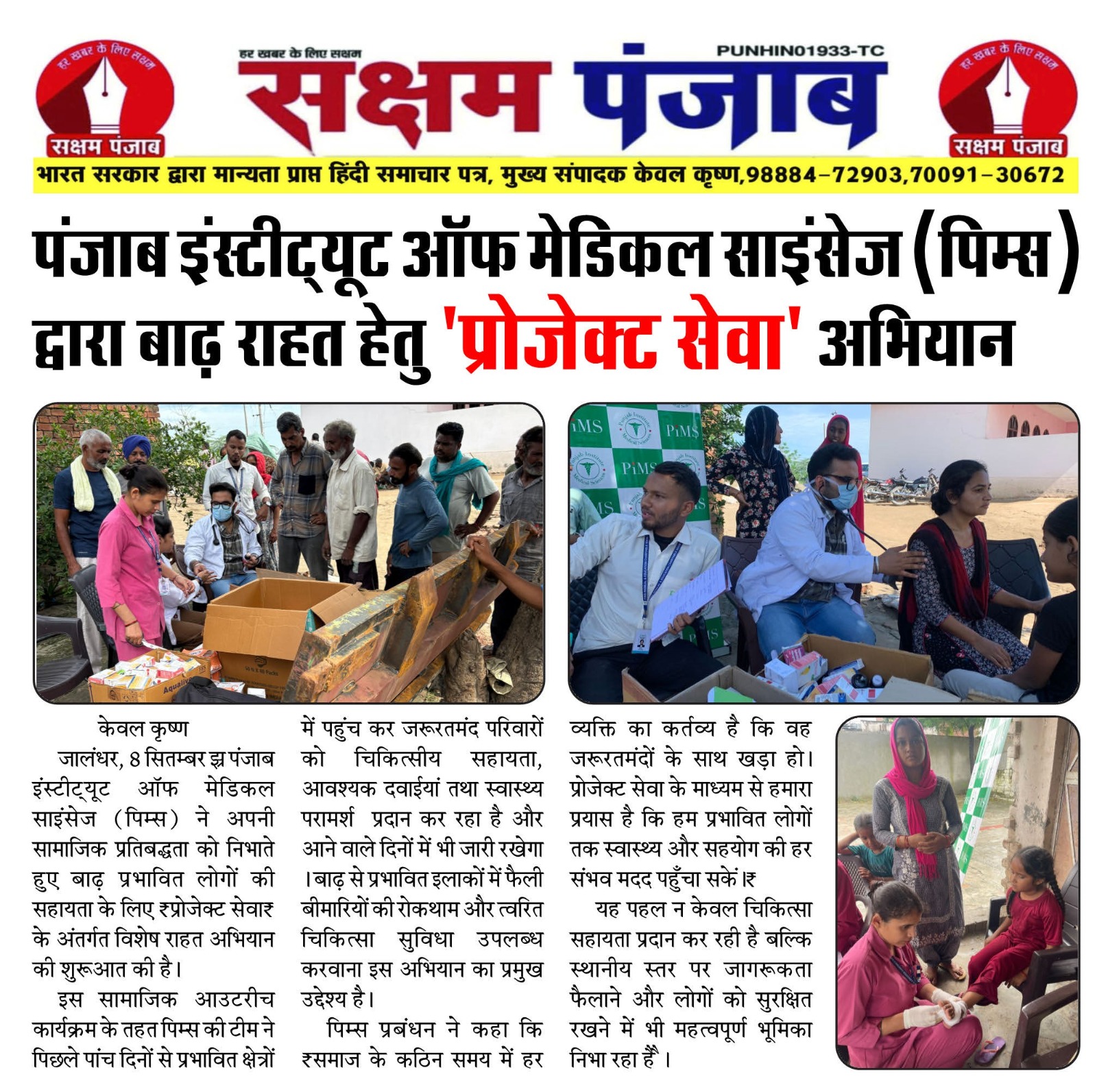 पंजाब इंस्टिट्यूट ऑफ मेडिकल साइंसेज (पिम्स) द्वारा बाढ़ राहत हेतु ‘प्रोजेक्ट सेवा’ अभियान