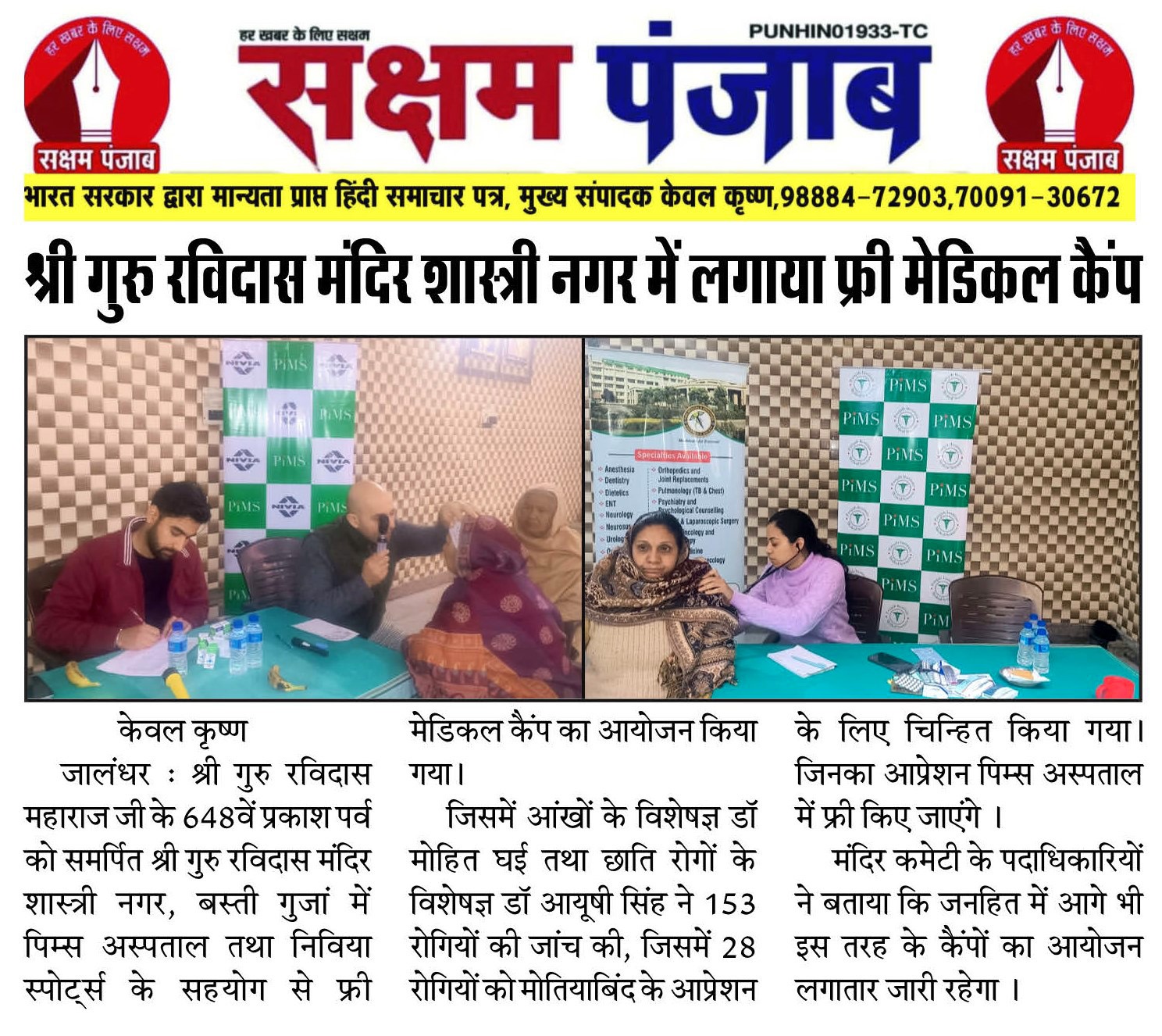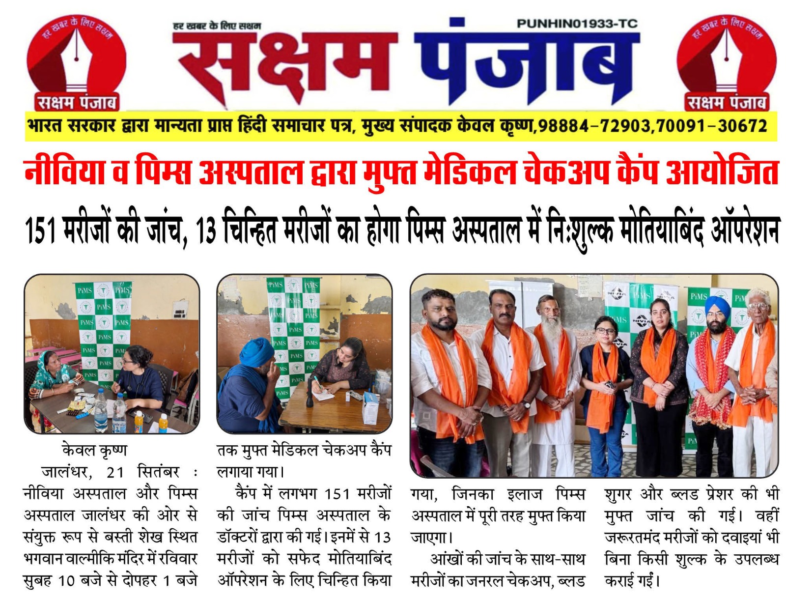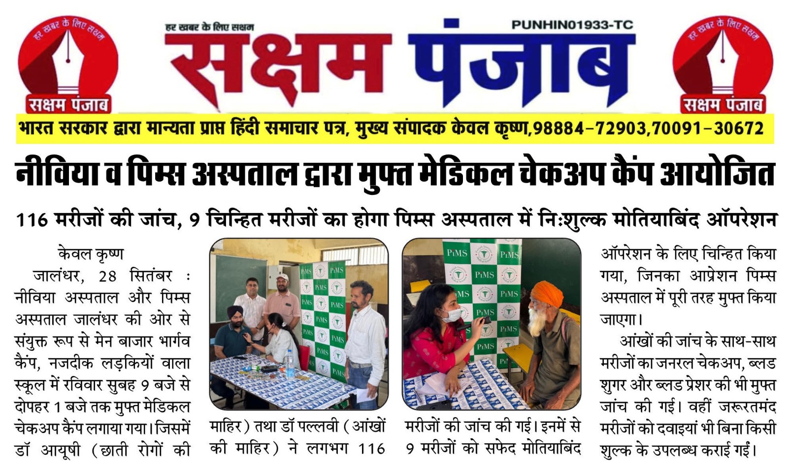 नीविया व पिम्स अस्पताल द्वारा मुफ्त मेडिकल चेकअप कैंप आयोजित