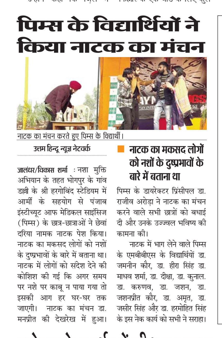 पिम्स के विद्यार्थियों ने किया नाटक का मंचन