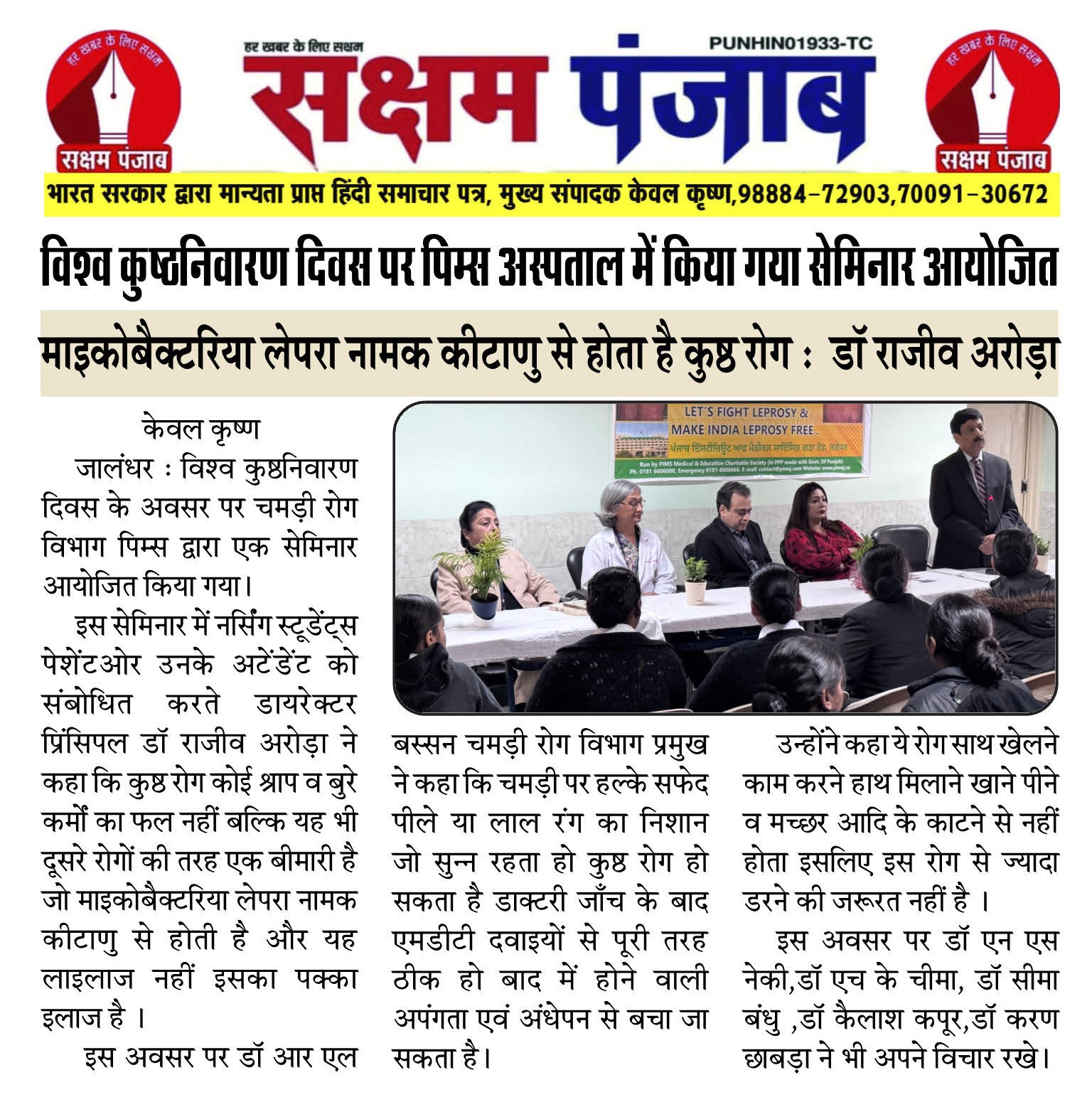 विश्व कुष्ठनिवारण दिवस पर पिम्स अस्पताल में किया गया सेमिनार आयोजित